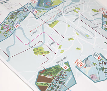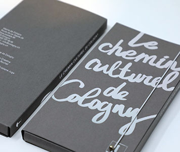 réalisation d'une pochette et de cartes pour le développement du chemin culturel de Cologny